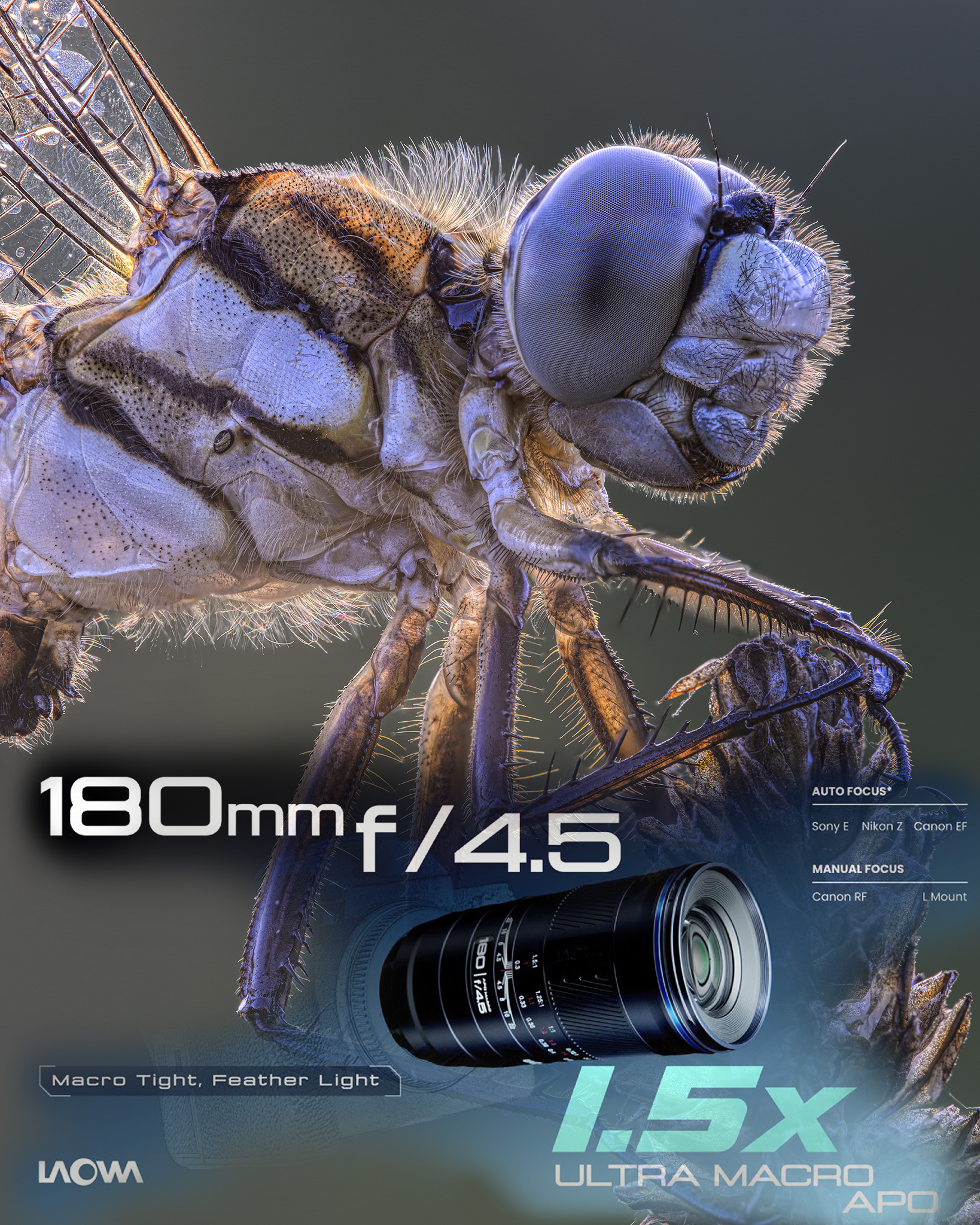 Il Laowa 180mm f/4.5 1.5X Ultra-Macro APO è adatto a qualsiasi genere macro e si rivolge soprattutto a chi pratica macro naturalistica, come fotografi di insetti e fiori, grazie al suo rapporto di ingrandimento spinto e alla distanza di lavoro più comoda.
